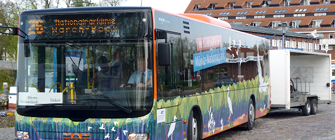 Empfehlenswert finde ich, dass Du mit dem Müritz-Nationalpark-Bus direkt an Deinen Startpunkt im Müritz-Nationalpark fahren kannst, von dem aus Du Deine Tour ganz individuell beginnen kannst und immer wieder die Möglichkeit hast, in einen der nächsten Busse z u steigen, wenn es Dir zu Fuß doch zu weit wird.
